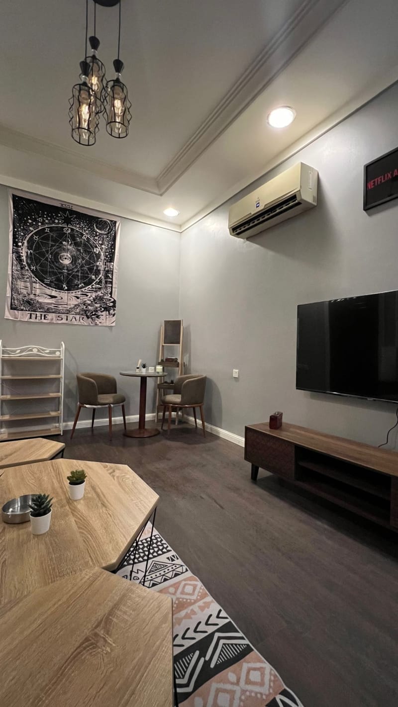 شقة عبارة عن غرفة نوم وصاله ومطبخ ودورة مياه تلفاز 55 أنش اشتراك NETFLIX مجاني انترنت مجاني